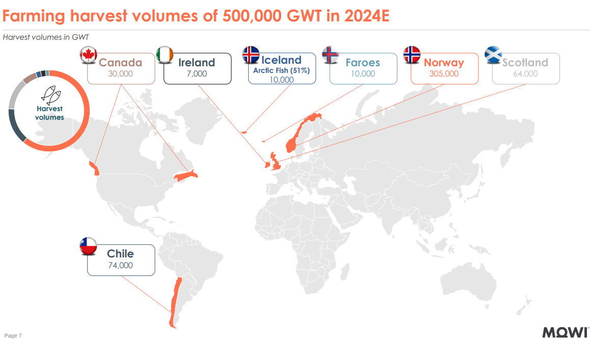 Mowi ASA (OSE: MOWI02), formerly Marine Harvest and previously Panfish, is one of the largest seafood companies in the world, and the world’s largest producer of Atlantic salmon. The company employs 13 233 people, and is represented in 25 countries. In 2017 the company had a turnover of EUR 3.6 billion. Marine Harvest is listed on the Oslo Stock Exchange (OSE) and its share also trade on the US OTC market.