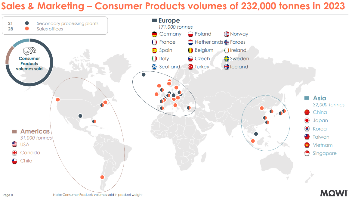 Mowi’s main secondary processed product is smoked salmon, and the largest factory is found in Poland. they also process several other species such as whitefish and flatfish into ready meals or packed in modified atmosphere products (MAP).