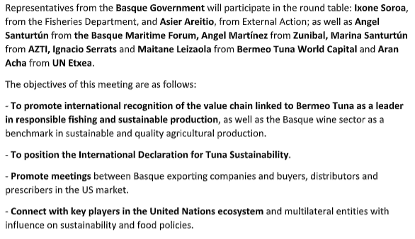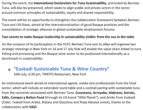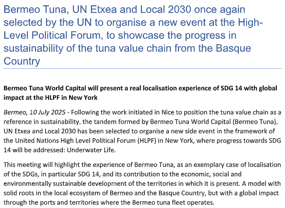 Bermeo Tuna World Capital to Position Tuna Sector and Local Blue Economy at High-Level Political Forum in New York