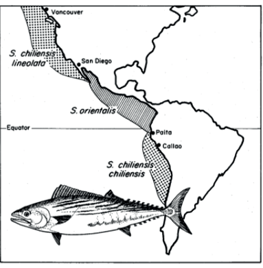 鲣鱼(Sarda chiliensis chiliensis)是一种属于鲭科(Scombridae)的远洋鱼类,广泛分布于东南太平洋,从秘鲁到智利,是该国手工渔业最重要的资源之一。